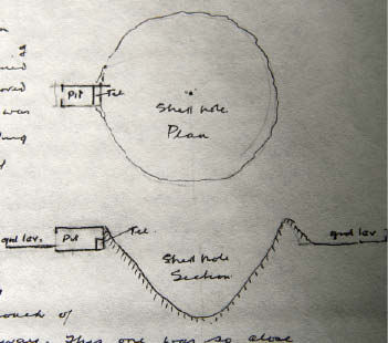 The hole made by the explosion was large enough in area and of a depth that would have contained a tram car and the earth removed as well will be seen from the sketch was piled up to the top of the signalling pit. Hence it will be seen that another yard nearer and the pit and all of us inside would have been no more.